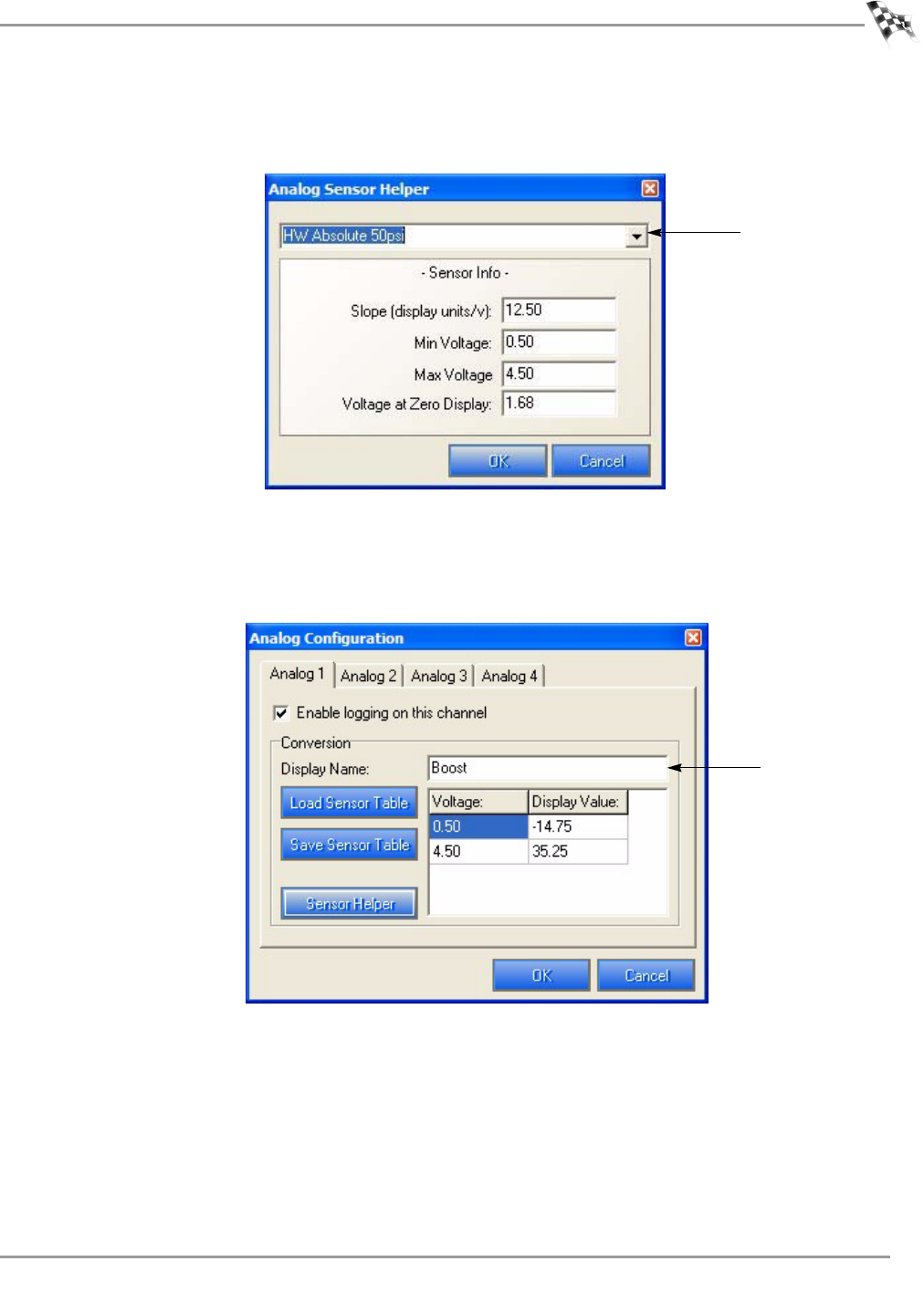 Figure 2-2: Analog Sensor Helper Window—Choose a Sensor