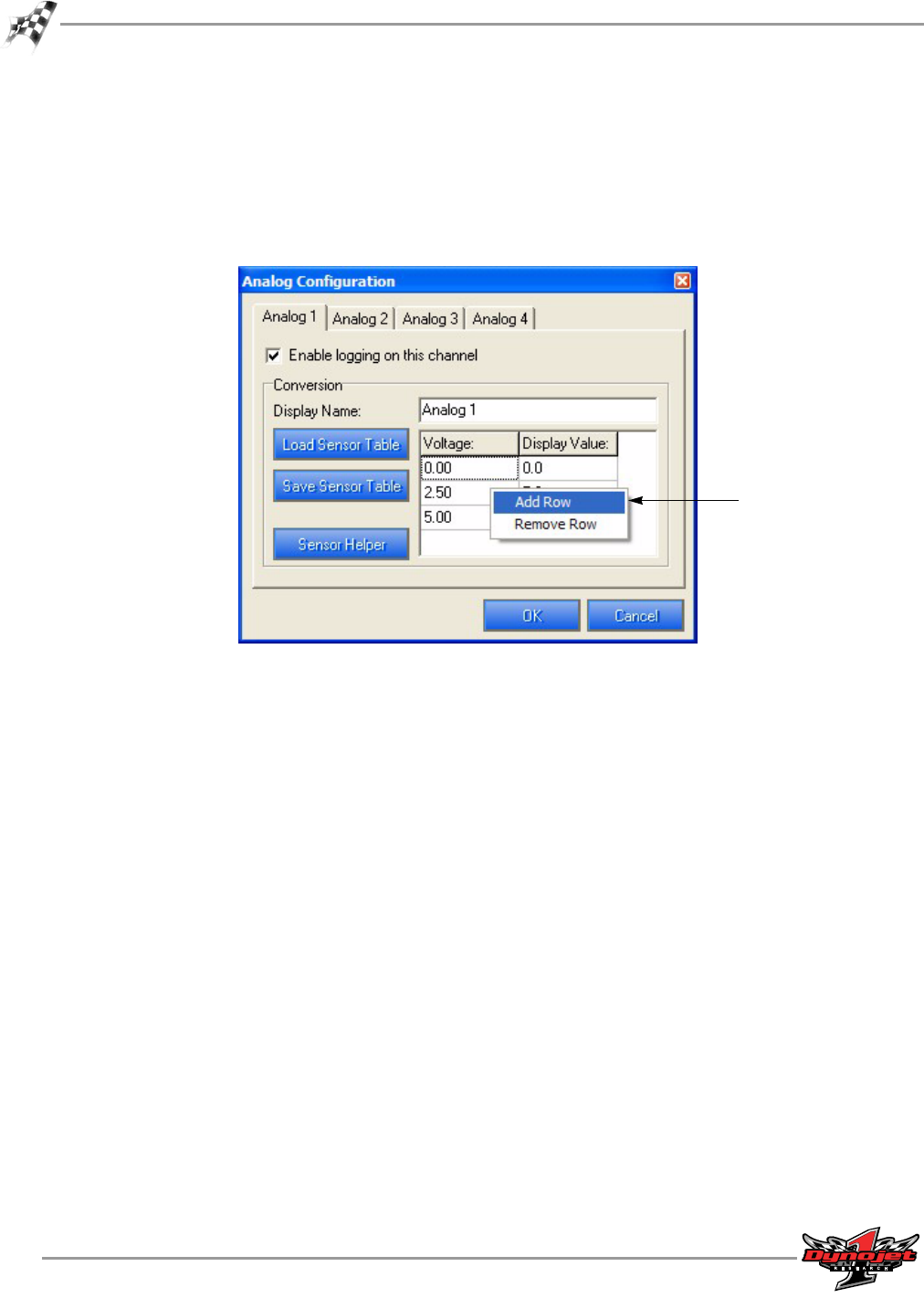 Figure 2-4: Analog Configuration Window—Customize the Sensor Table