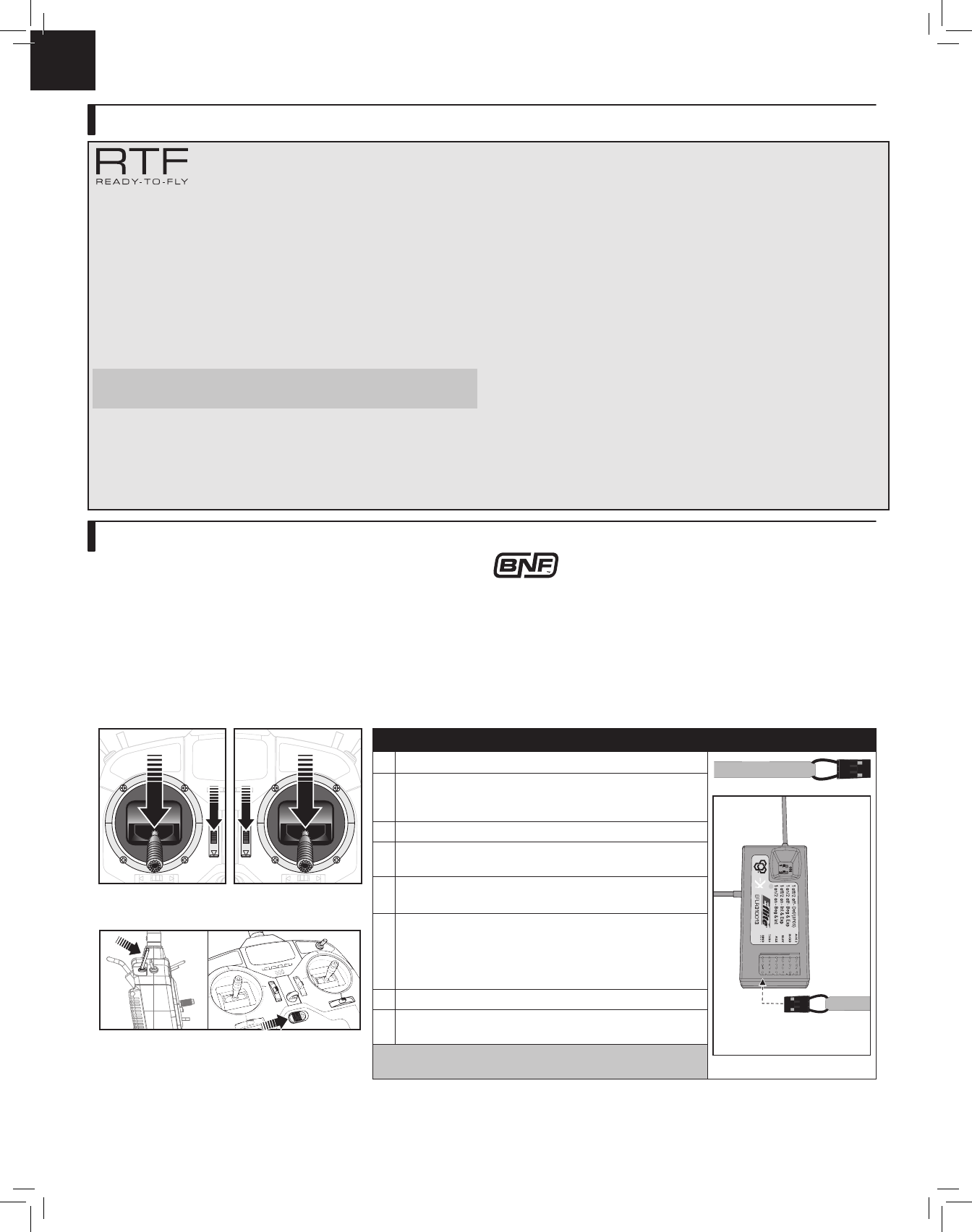 for a list of compatible transmitters. For the BNF aircraft, you need to ‘bind’
