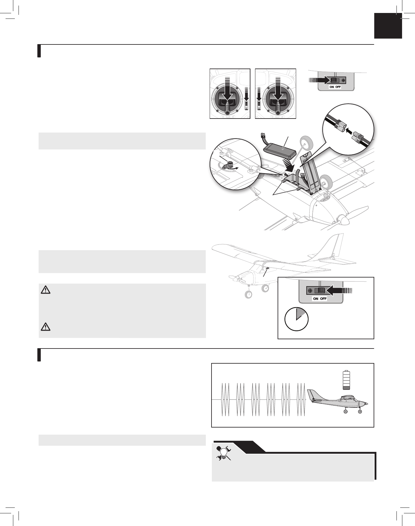 Flight Battery Installation, SAFE system and Electronic Speed Control (ESC) Arming