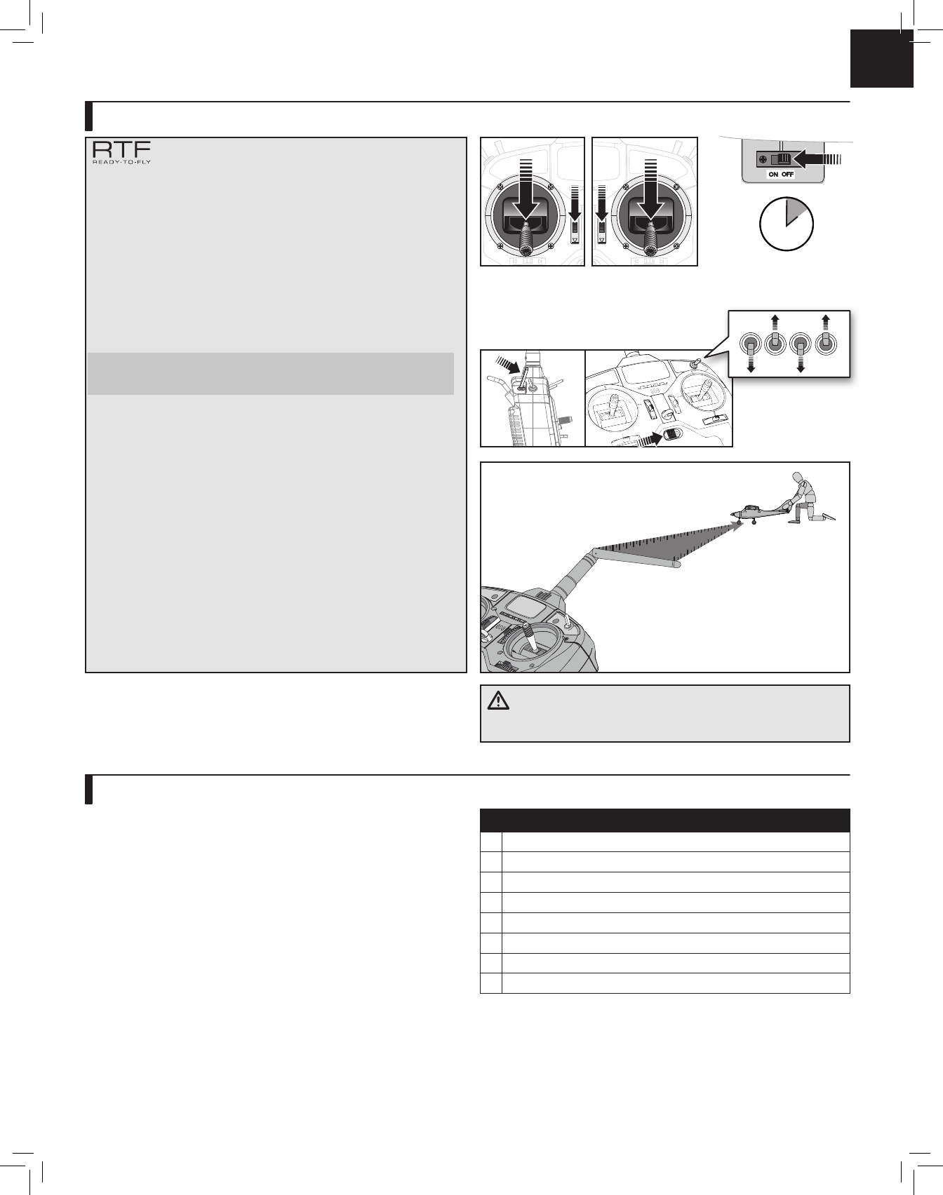 5. If control issues exist, do not attempt to fly. Refer to the contact table at the