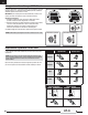IT Contenuto del kit Informazioni per iniziare Impostazioni trasmittente Doppia corsa Impostare la trasmettitore usando la tabella messa a punto del trasmettitore Corsa max Corsa min Alet 20mm 20mm 10mm 10mm Ele 18mm 16mm 10mm 8mm Tim 25mm 15mm Flaps Atterraggio =30mm Decollo =15mm Baricentro (CG) 92-98mm dietro al bordo di entrata dell’ala all’altezza della fusoliera.