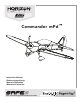 Replacement Parts • Ersatzteile • Pièces de rechange • Pezzi di ricambio Part # | Nummer Numéro | Codice EFL4821 EFL4822 EFL4823 EFL4824 EFL4825 EFL4826 EFL4827 EFL4828 EFL4829 EFL4830 EFL4831 EFL4832 EFL4833 EFL4834 EFL4835 EFL4836 EFLP12080E2 EFLM4015C EFLA1045 SPMSA330 SPMAR636A Description Beschreibung Painted Fuselage: Commander mPd 1.4m Painted Wing Set Left & Right: Commander mPd 1.4m Horizontal Tail Set Left&Right: Commander mPd 1.4m Hatch Painted with Pilot: Commander mPd 1.