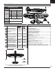 IT Contenuto del kit Informazioni per iniziare Impostazioni trasmittente Doppia corsa Impostare la trasmettitore usando la tabella messa a punto del trasmettitore Corsa max Corsa min Alet 25mm 25mm 18mm 18mm Ele 20mm 15mm Tim 50mm 40mm Flaps Atterraggio =40mm Decollo =20mm Baricentro (CG) 88mm +/-3mm dietro al bordo di entrata dell’ala all’altezza della fusoliera.