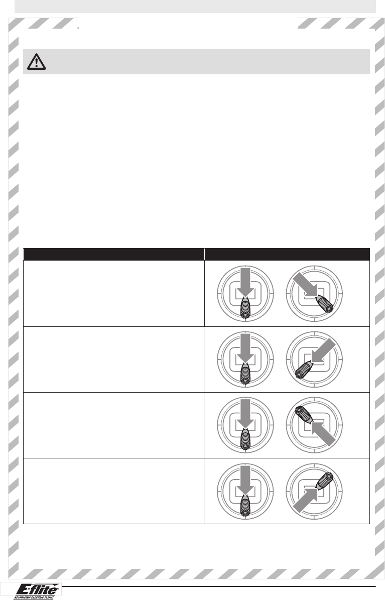 Verwenden Sie die folgenden entsprechenden Hebelpositionen auf dem Sender, wenn das Flugzeug auf