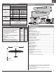 EN Preflight 1 2 3 4 5 6 7 8 Remove and inspect contents. Read this instruction manual thoroughly. Charge the flight battery. Setup Transmitter using transmitter setup chart Fully assemble the aircraft. Install the flight battery in the aircraft (once it has been fully charged). Check the Center of Gravity (CG). Bind the aircraft to your transmitter. 9 10 11 12 13 14 15 Make sure all linkages move freely. Perform the control direction test with the transmitter.