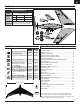 EN Control Horn and Servo Arm Settings The table to the right shows the factory settings for the control horns and servo arms. Fly the aircraft at factory settings before making changes. NOTICE: If control throws are changed from the factory settings, the AR631 gain values may need to be adjusted. Refer to the Spektrum AR631 manual for adjustment of gain values. Horns Arms Elevons After flying, you may choose to adjust the linkage positions for the desired control response. See the table to the right.