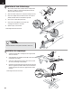 FR Installation du train d’atterrissage 1. Retirez le cône, l’écrou d’hélice, la rondelle, l’hélice et le flasque arrière (A). Retirez les 3 vis (B) et le capot (C) du fuselage (D). Des outils sont requis pour desserrer l’écrou et les vis. 2. Retournez le modèle de façon à avoir le dessous du fuselage face à vous. 3. Desserrez la vis (E) du bras de commande du train de nez et insérez la jambe (F) (le méplat orienté vers l’avant) dans le support (G). 4.