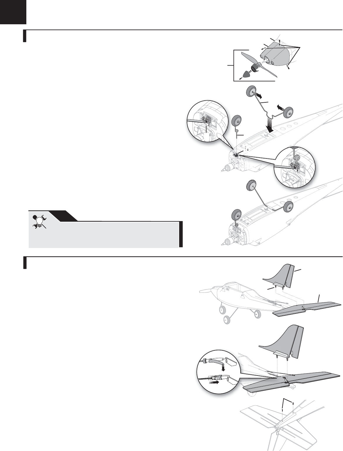 1. Montieren Sie das Höhenleitwerk (A) auf dem Rumpf unter der Anlenkung