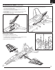DE Zusammenbau des Modells Fortsetzung Montage des Seitenleitwerks 1. Den Servo des Seitenruders auf eines der Seitenleitwerke mit der Servoverlängerung im Rumpf verbinden. 2. Den Servo des Seitenruders mit der Servoleitung verbinden, die sich in der Tasche befindet, wo das Seitenruder befestigt ist. 3. Die Servoleitung wieder in die Tasche schieben und das Seitenleitwerk in seine Position schieben. 4. Das Seitenleitwerk mit zwei 3 mm x 16 mm Blechschrauben sichern. (2-mm-Inbusschlüssel erforderlich) 5.