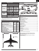 EN Preflight 1 2 3 4 5 6 7 Remove and inspect contents. Read this instruction manual thoroughly. Charge the flight battery. Fully assemble the aircraft. Install the flight battery in the aircraft (once it has been fully charged). Check the Center of Gravity (CG). Bind the aircraft to your transmitter. 8 9 10 11 12 13 Make sure all linkages move freely. Perform the control direction test with the transmitter. Adjust the flight controls and transmitter as needed. Perform a radio system range test.