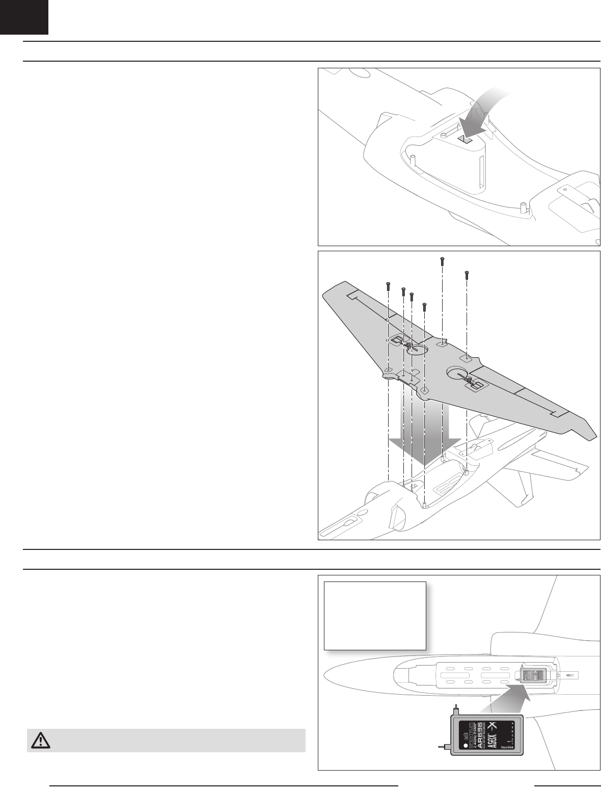 7. Attach the wing to the fuselage with six 3 x 16 mm screws. Do not over