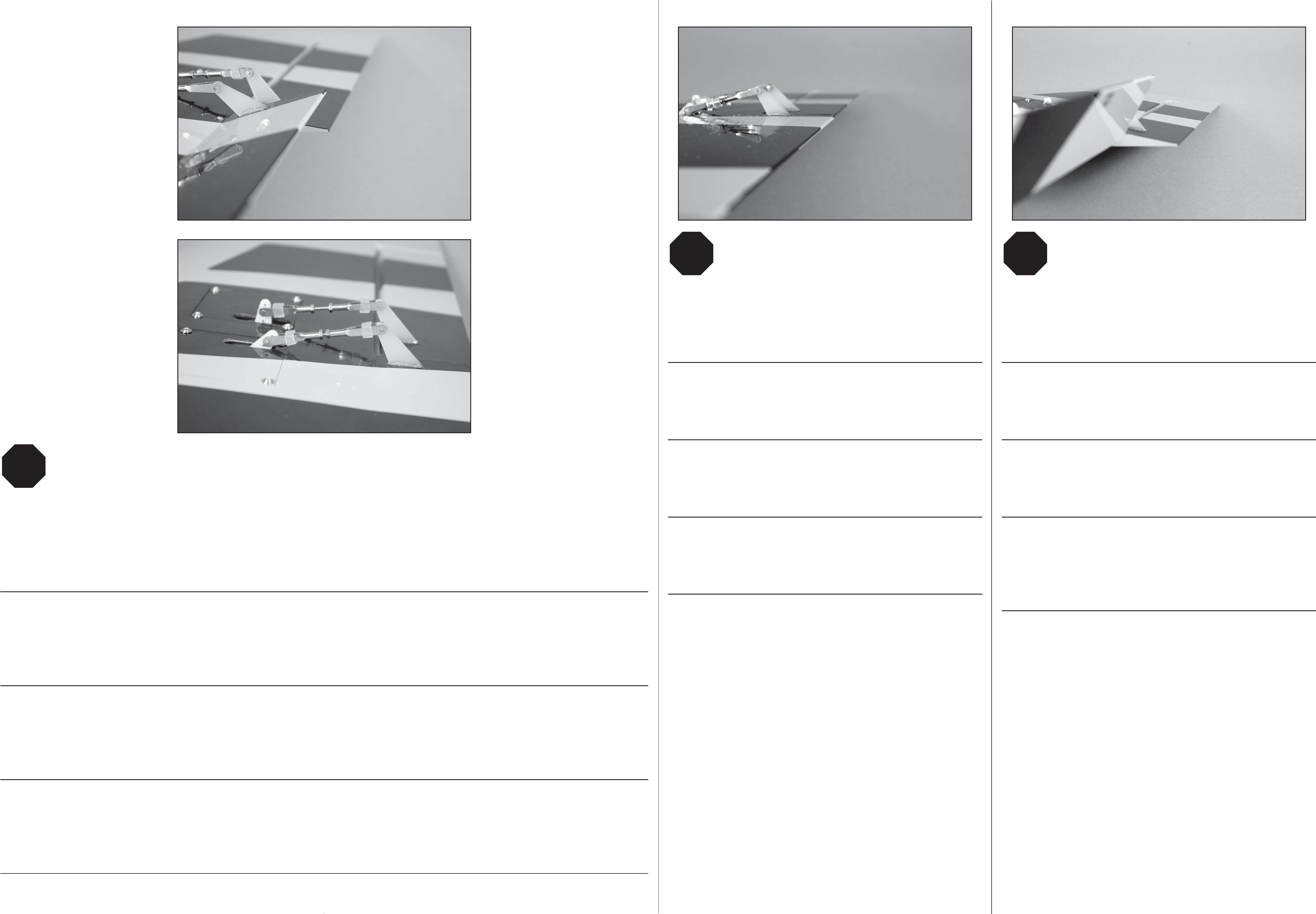 Togliere il nastro che teneva i fl ap in posizione. Usare il radiocomando per centrare i servi. Collegare una forcella in