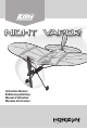 DE Packungsinhalt Nur RTF Inhaltsverzeichnis Spezifikationen................................................................ 17 Checkliste vor dern Flug.................................................. 18 Akku-Warnhinweise......................................................... 18 Flug-Akku laden.............................................................. 19 Einsetzen der Senderakkus (RTF)..................................... 19 Übersicht über den Sender (RTF)......................................
