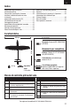 IT Indice Impostazione del trasmettitore .............................38 Installazione dell’ala ............................................38 Connessione trasmittente e ricevente ..................39 Installare la batteria di bordo e armare la ricevente ..........................................................40 Impostazione del baricentro (CG)..........................41 Test direzionale dei comandi ................................41 Centraggio dei comandi .......................................