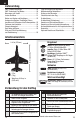 DE Lieferumfang SAFE Sendereinstellungen ..................................19 SAFE Technologie Flug Modes.............................20 Warnungen zum Laden .......................................21 Laden des Akkus ................................................21 Binden von Sender und Empfänger .....................22 Armieren des Reglers / Empfänger, Einbau des Akku und Balancieren des Schwerpunktes ..23 Zentrieren der Kontrollen ....................................24 Steuerrichtungstest ...............
