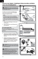 DE Problemlösung (Fortsetzung) Problem LED auf dem Empfänger blinkt schnell, Flugzeug reagiert nicht auf den Sender (nach dem Binden) Ruder bewegen sich nicht Mögliche Ursache Lösung Sie haben weniger als 5 Sekunden nach dem Einschalten des Senders den Flugakku angeschlossen Lassen Sie den Sender eingeschaltet, trennen Sie den Flugakku und verbinden ihn wieder Flugzeug ist an einen anderen Speicherplatz Wählen Sie das richtige Modell im Modellgebunden (nur Sender mit ModelMatch) speicher, trennen und