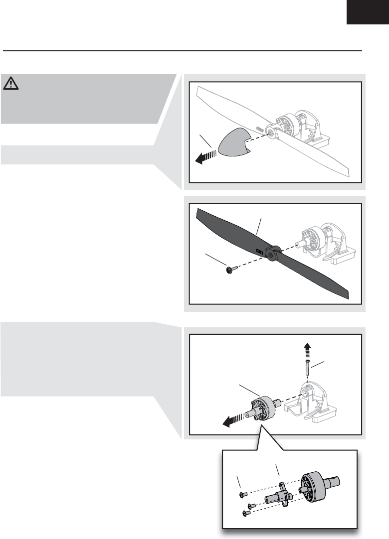 1. Entfernen Sie den Spinner (A) vom Propeller.