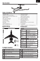EN Box Contents Table of Contents Transmitter Setup ..................................................4 Transmitter and Receiver Binding...........................4 ESC/Receiver Arming, Battery Installation and Center of Gravity ....................................................5 SAFE® Select Technology .......................................6 Low Voltage Cutoff (LVC) ........................................6 Control Centering ..................................................7 Control Horn Settings ...