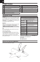 EN Preflight Checklist 1 2 3 4 5 6 6 Remove and inspect contents. Read the instruction manual thoroughly. Charge the flight battery. Program your transmitter. Install the fully charged flight battery in the aircraft. Check the center of gravity (CG). Bind the aircraft to your transmitter. 8 9 10 11 12 13 Make sure all linkages move freely. Perform the control direction test. Adjust the flight controls and transmitter as needed. Perform a radio system range test. Find a safe open area to fly.