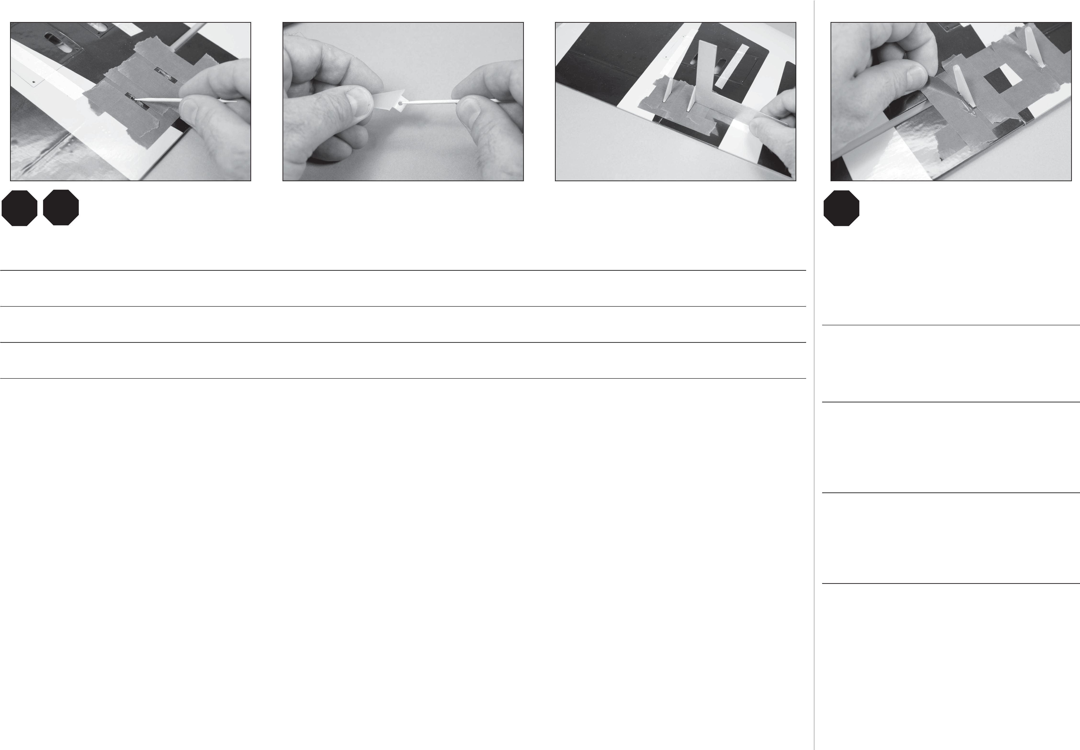 Per incollare le squadrette di fl ap e alettoni, usare colla epoxy 5 minuti. Usare una squadra per verifi care che le squadrette siano perpendicolari alla superfi cie di controllo.