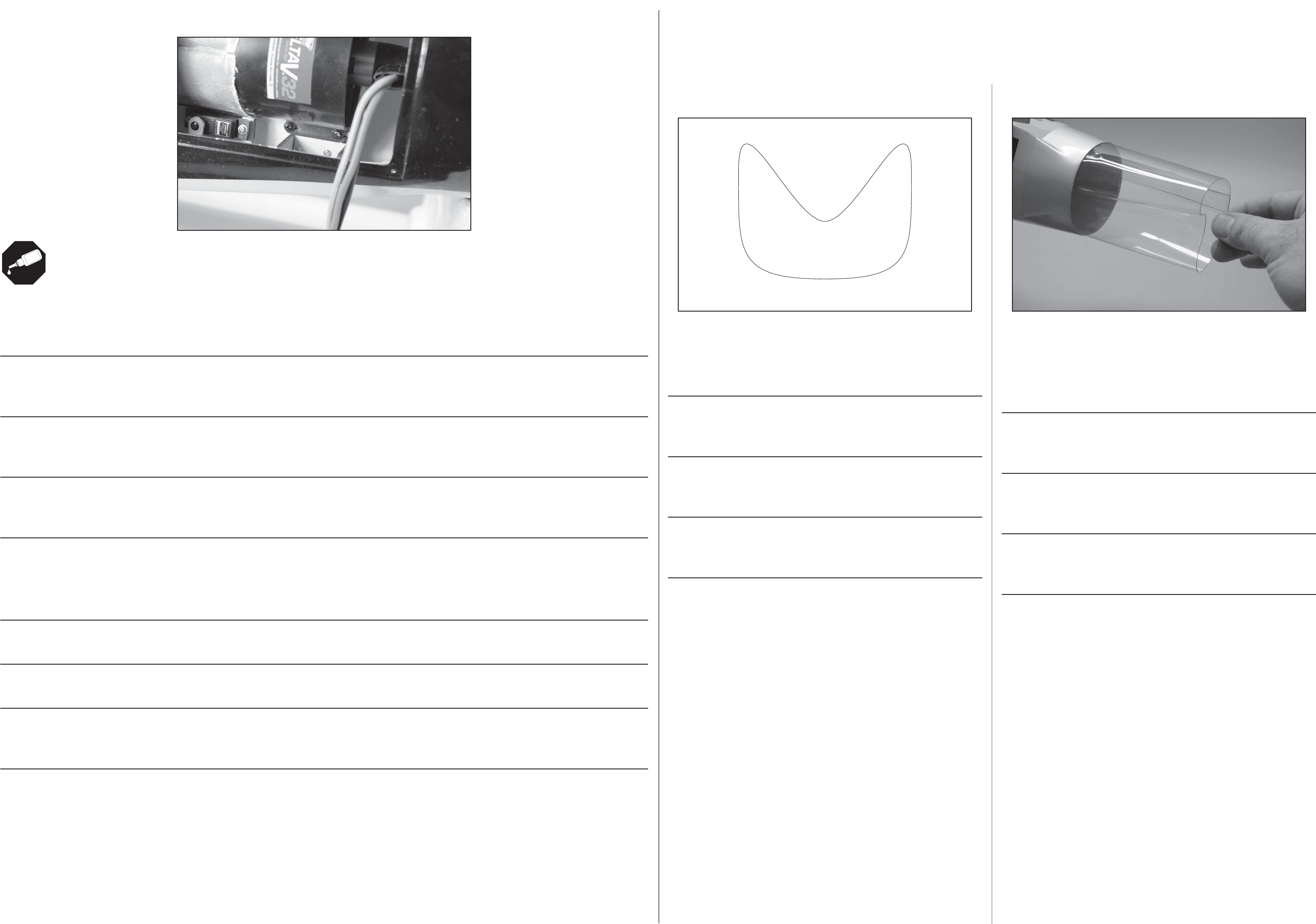fori alcune gocce di colla CA per indurire il legno circostante. Fissare la ventola alla fusoliera con le 4 viti, strette con un