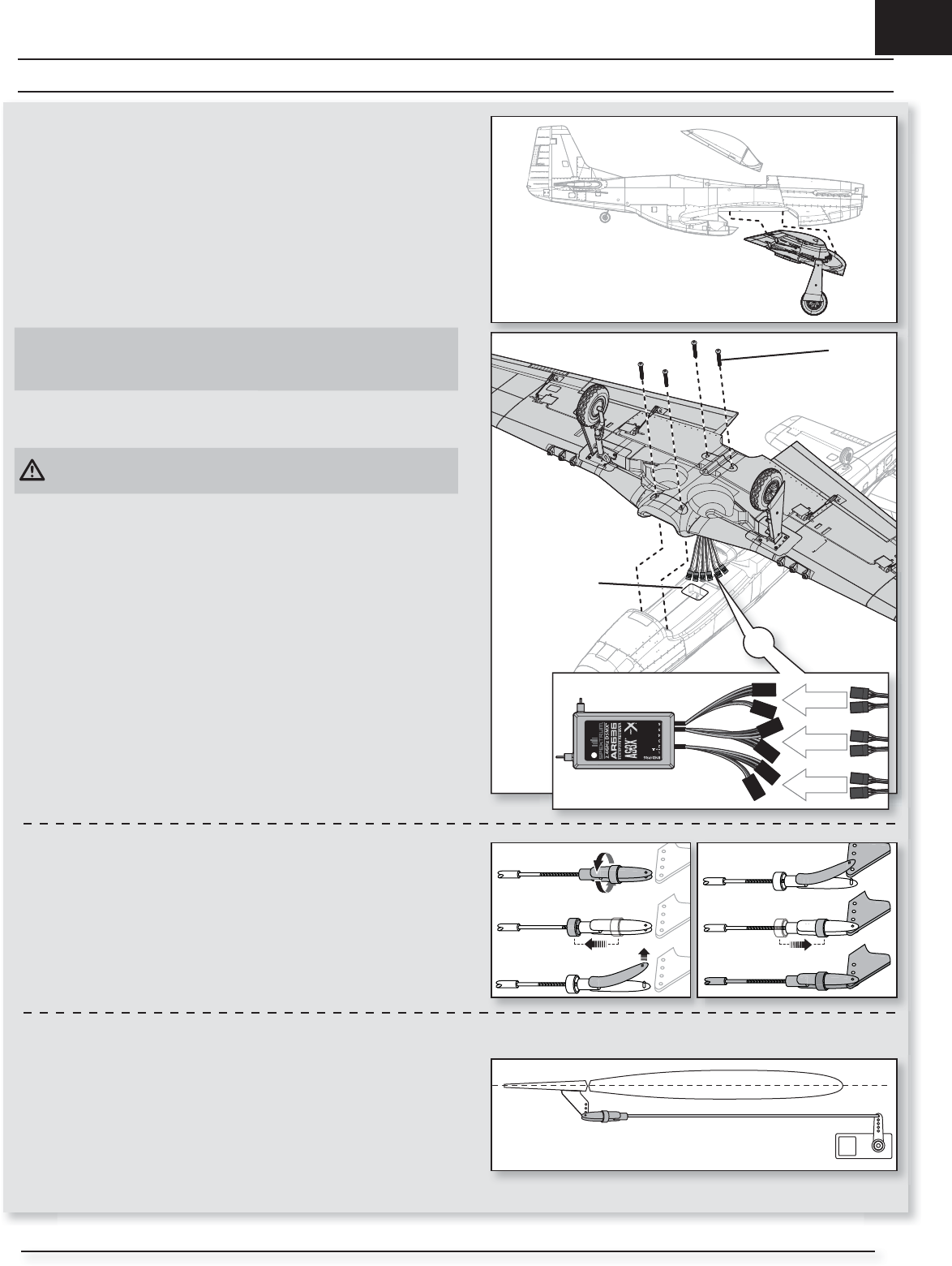 3. Schließen Sie die Klappen-, Fahrwerks- und Querruderservoanschlüsse an