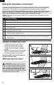 IT Elenco dei controlli prima del volo 1. Caricare la batteria. 6. Impostare i riduttori di corsa. 2. Installare la batteria di volo sull’aereo (dopo averla caricata completamente). 7. Controllare il centro di gravità. 3. Connettere l’aereo al trasmettitore. 8. Eseguire il controllo della portata del sistema radio. 4. Accertarsi che i comandi si muovano liberamente. 9. Trovare un'area sicura e aperta. 5. Eseguire il test della direzione dei comandi con il trasmettitore.