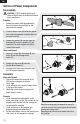EN Service of Power Components Disassembly CAUTION: DO NOT handle propeller parts while the flight battery is connected. Personal injury could result. B Propeller 1. Remove the battery hatch by gripping the front of the hatch, then pulling it up and away from the fuselage. 2. Carefully loosen screw (A) inside the spinner, then remove the propeller assembly (B) from the motor shaft (C). C A D F E 3. Remove the spinner (D) and glue from the backplate (E) to free the propeller (F) and backplate.
