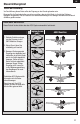 DE Steuerrichtungstest Testen der Steuerung Vor Durchführung dieses Tests sollte das Flugzeug an den Sender gebunden sein. Bewegen Sie die Senderkontrollen um sicher zu stellen, dass sich die Ruder in die richtige Richtung bewegen. Vergewissern Sie sich dass die die Leitwerksanlenkungen frei bewegen können und nicht durch Aufkleber gestört werden. AS3X/SAFE Kontrolltest Dieser Test soll sicher stellen dass das AS3X System einwandfrei funktioniert. 3.