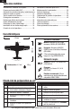FR Guide de dépannage AS3X Problème Les gouvernes ne sont pas au neutre alors que les manches sont au neutre Cause Possible Solution Les tringleries ne sont pas correctement réglées Effectuez un réglage mécanique en serrant ou desserrant les “U” des tringleries L’avion n’est pas resté immobile durant 5 secondes Maintenez l'avion immobile pendant 5 secondes après la connexion de la batterie L'avion vole de manière L’avion n’est pas resté immobile durant 5 irrégulière d'un vol à secondes l'autre Les t