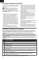 FR Guide de dépannage (Suite) Problème Les gouvernes ne bougent pas Cause possible Solution La gouverne, guignol de commande, liaison ou servo endommagé Réparez ou remplacez les pièces endommagées et réglez les commandes Câbles endommagés ou mal connectés Contrôlez les câbles et les connexions, et procédez aux connexions et remplacements nécessaires La charge de la batterie de vol est faible Rechargez complètement ou remplacez la batterie de vol La liaison ne se déplace pas librement Assurez-vous