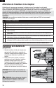 FR Armement du contrôleur électronique de vitesse L’armement du contrôleur de vitesse se produit après l’affectation, comme décrit précédemment, mais la connexion ultérieure d’une batterie de vol requiert les étapes suivantes. 1 Abaissez la manette et le trim des gaz jusqu’à leurs réglages les plus bas. Mettez l’émetteur sous tension et patientez 5 secondes. 2 3 Installez la batterie et branchez la au contrôleur. Laissez l’avion immobile sur ses roue durant 5 secondes.