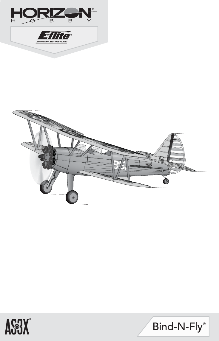 ™ UMX PT-17 © 2015 Horizon Hobby, LLC. E-flite, AS3X, UMX, DSM, DSM2, DSMX, ModelMatch, Bind-N-Fly, Celectra and the Horizon Hobby logo are trademarks or registered trademarks of Horizon Hobby, LLC. The Spektrum trademark is used with permission of Bachmann Industries, Inc. Futaba is a registered trademark of Futaba Denshi Kogyo Kabushiki Kaisha Corporation of Japan. All other trademarks, service marks and logos are property of their respective owners. US 7,898,130. US D578,146. PRC ZL 200720069025.