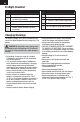 EN Control Horn Settings The table to the right shows the factory settings for the control horns. Fly the aircraft at factory settings before making changes. After flying, you may choose to adjust the linkage positions for the desired control response. Elevator Rudder CAUTION: When these are incorrectly connected for the pilot’s skill level, unexpected aircraft response to controls can result. This can cause damage to the aircraft and personal injury.