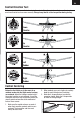 EN Control Direction Test Bind your aircraft and transmitter before doing these tests. Move the controls on the transmitter to make sure aircraft control surfaces move correctly. Always keep throttle at the low position during testing. Down Elevator Up Elevator Left Rudder Right Rudder Control Centering Before the first flights, or in the event of an accident, make sure the flight control surfaces are centered. Adjust the linkages mechanically if the control surfaces are not centered.