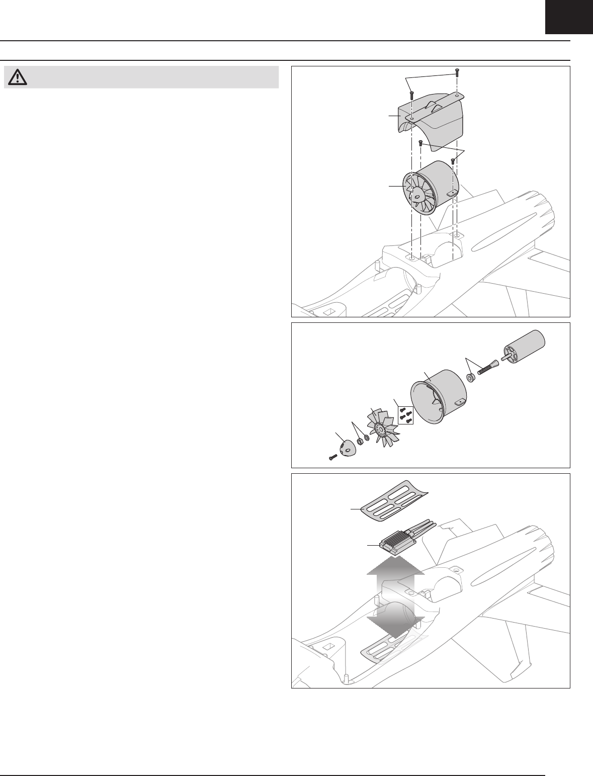 3. Pull the fan unit (D) out of the fuselage and disconnect the motor leads