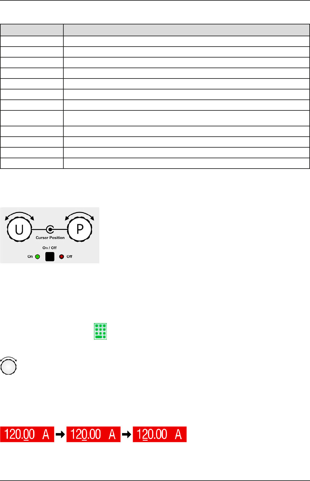 schieben des Cursors von niederwertigen zu höherwertigen Dezimalpositionen (rotierend) des einzustellenden