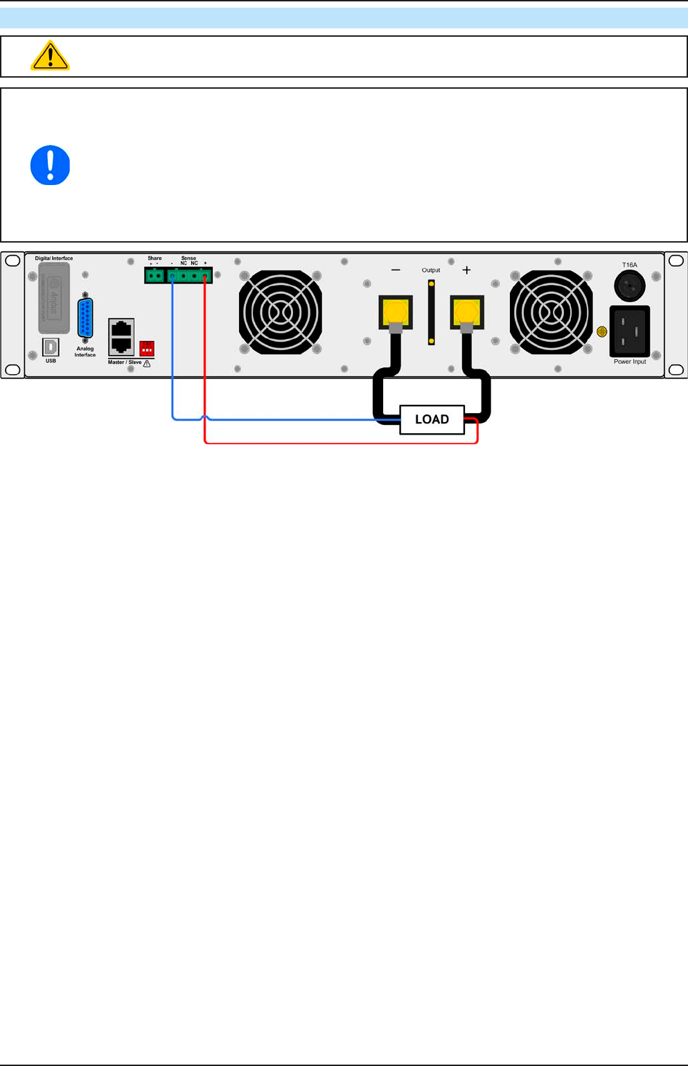 • (+) Sense darf nur am (+) der Last und (–) Sense nur am (–) der Last angeschlossen werden.