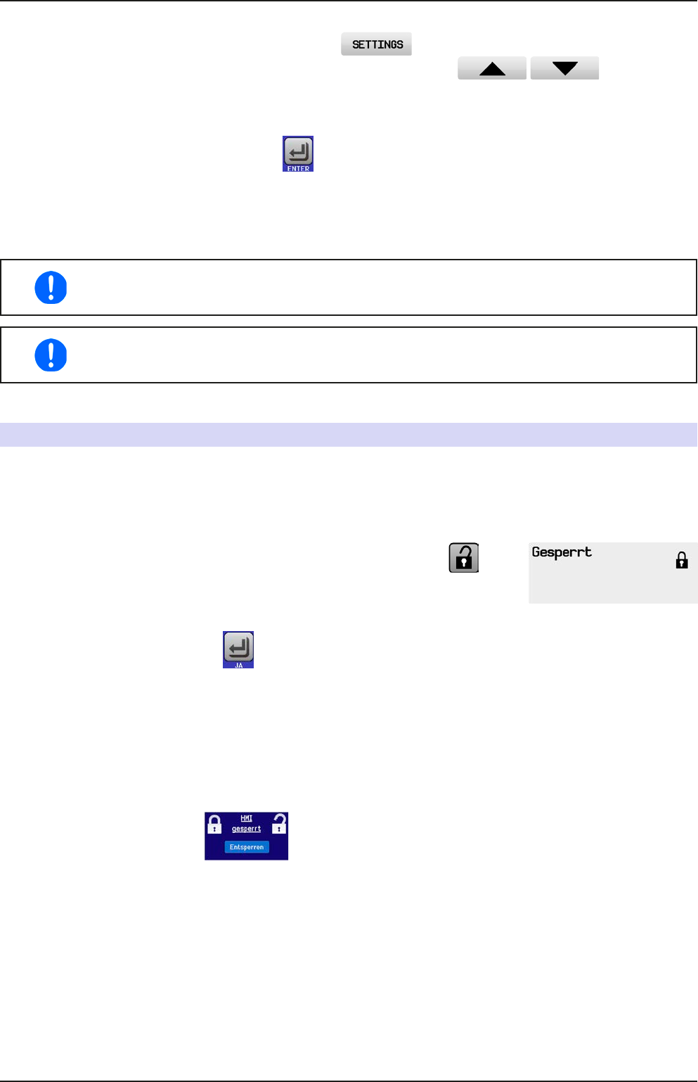 sowie der Touchscreen gesperrt werden, so daß keine Verstellung eines Wertes per Drehknopf oder Bedienung