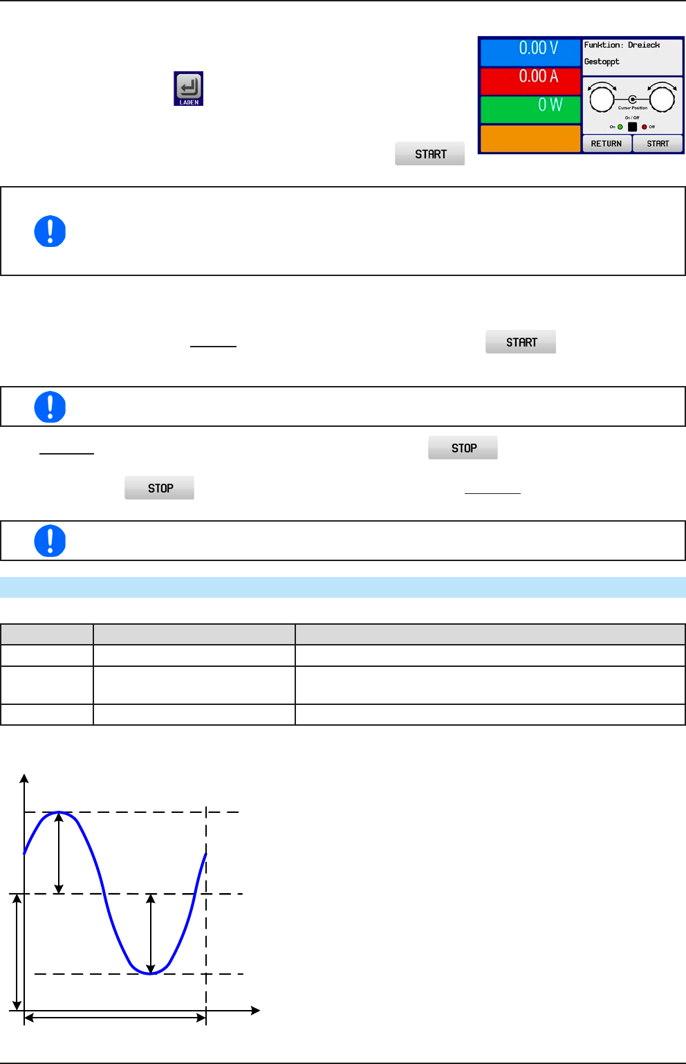 I(A), U(A) 0...(Nennwert - (Off)) von U, I A = Amplitude des zu generierenden Signals