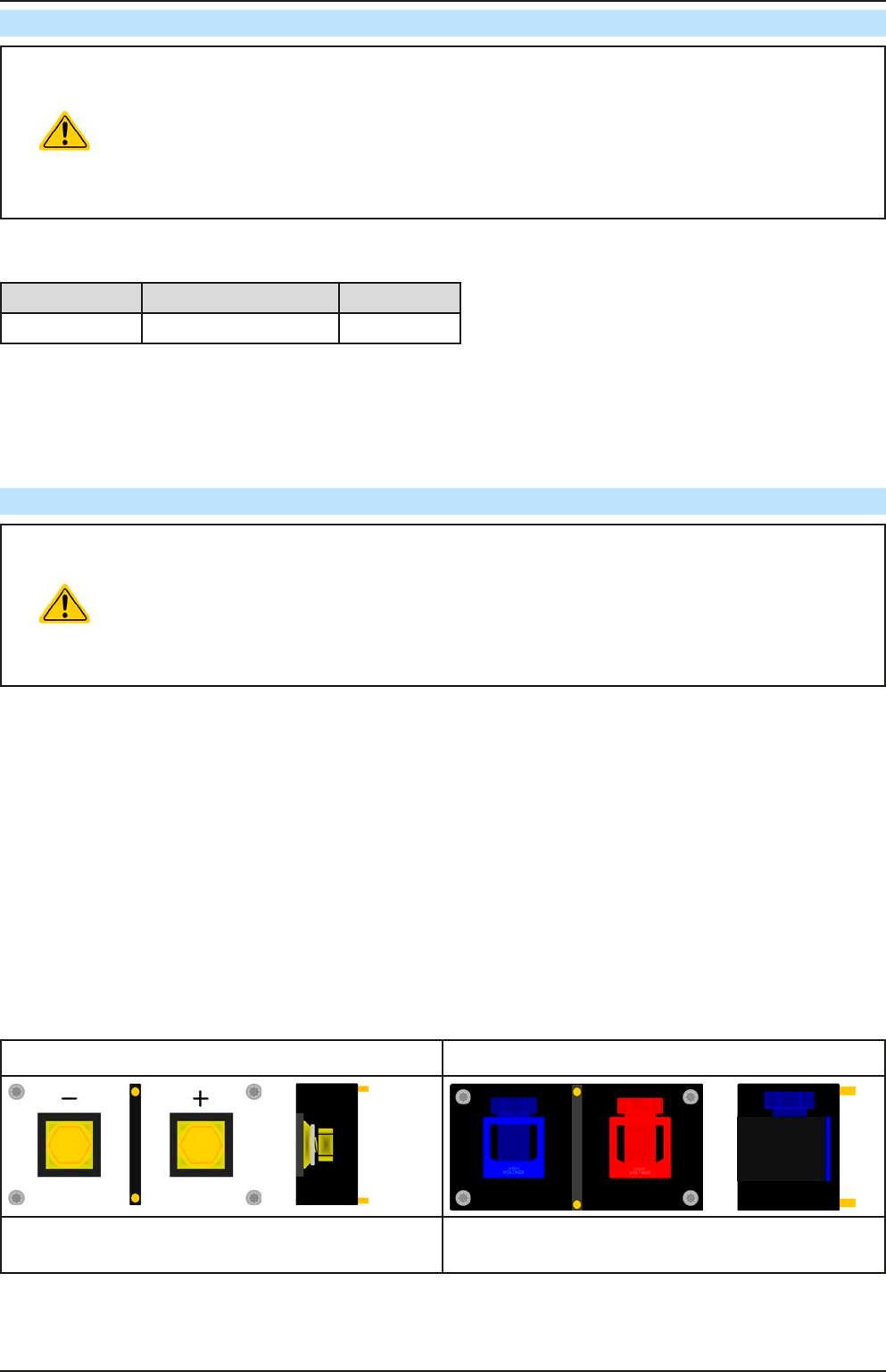 The table below shows an overview of the various DC terminals. It is recommended that connection of load cables