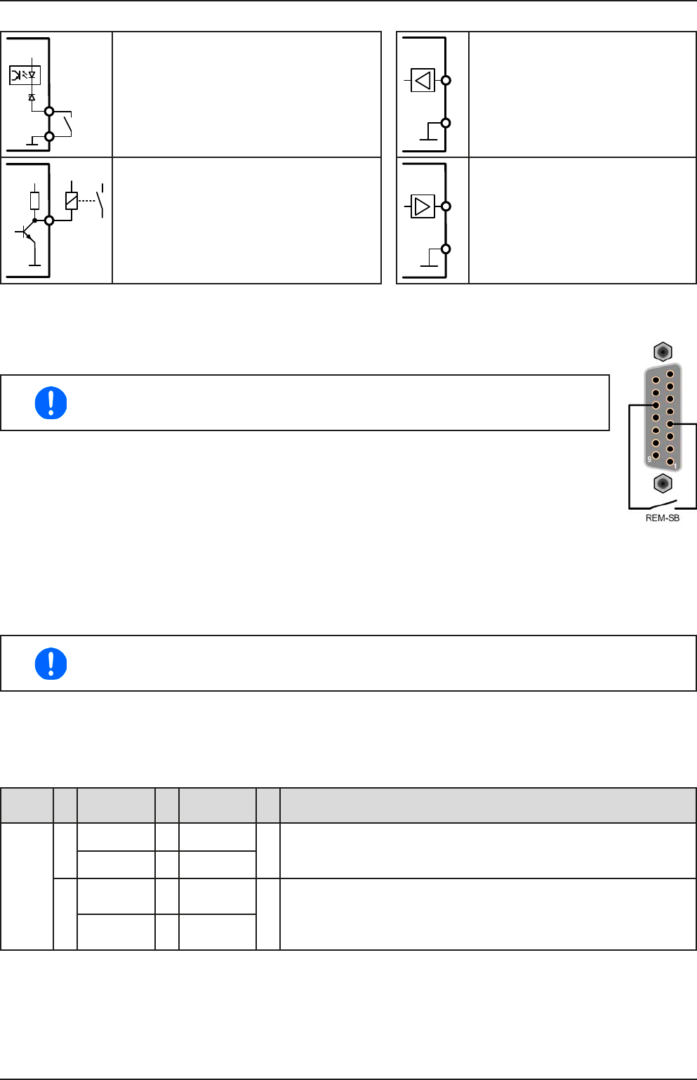 During remote control via analog interface, only pin “REM-SB” determines the states of the DC output, according