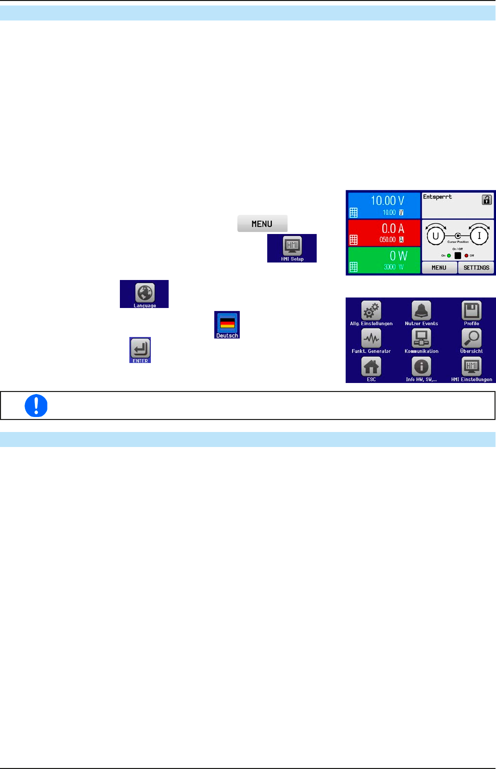 Bei Bedarf kann die Sprache der Anzeige (Touchscreen) auf Deutsch umgestellt werden.