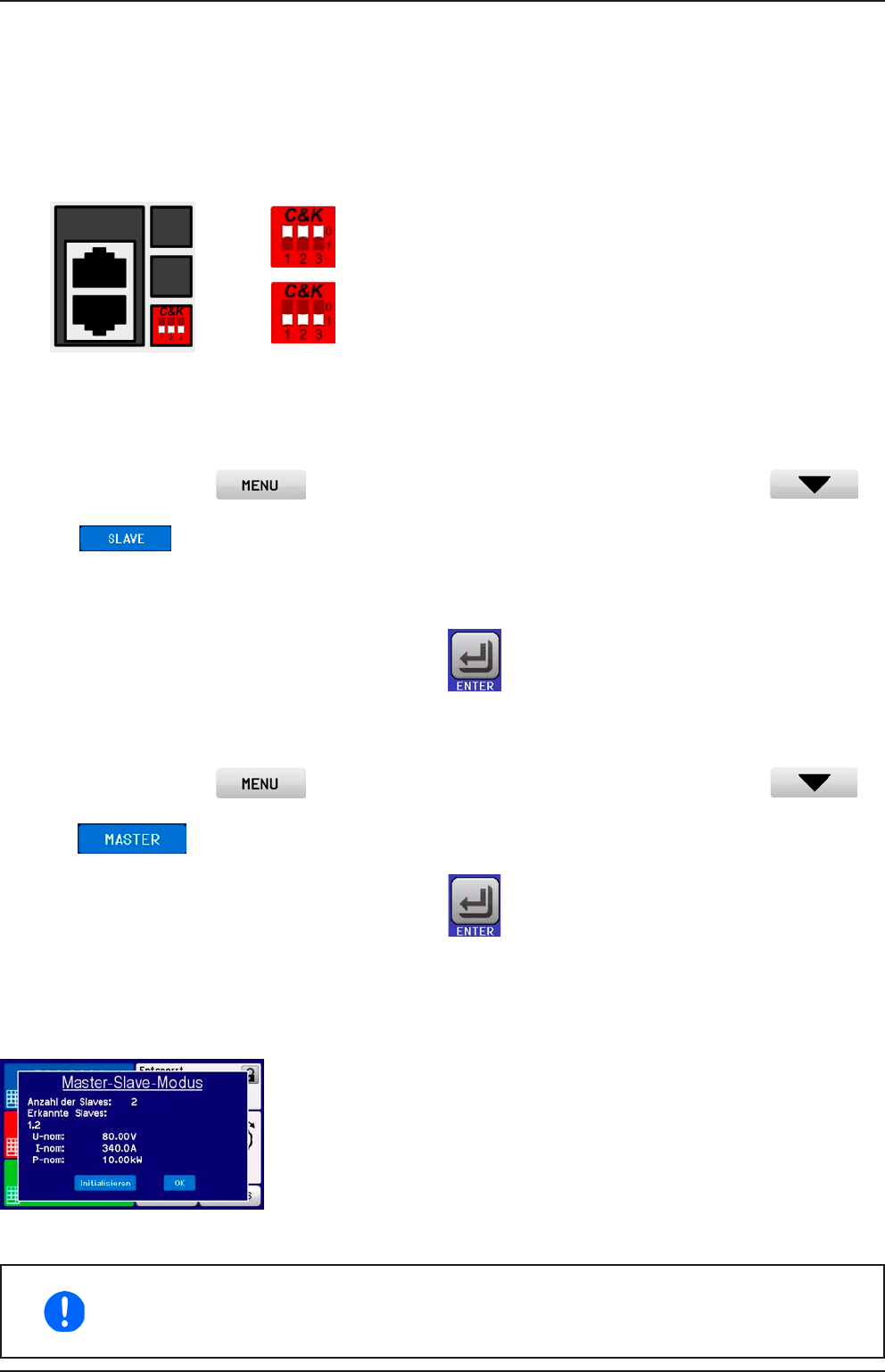 dreipoligen DIP-Schalters, der auf der Rückseite des Gerätes zugänglich ist (neben den Master-Slave-