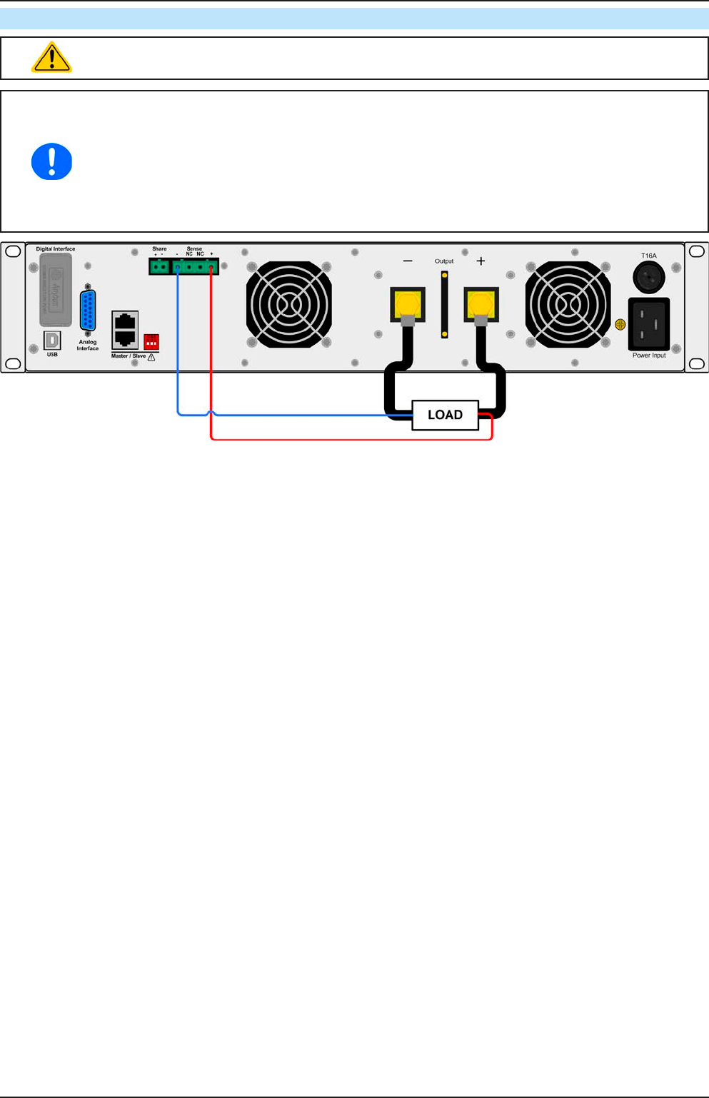 • Sense cables should be twisted and laid close to the DC cables to damp oscillation. If neces-