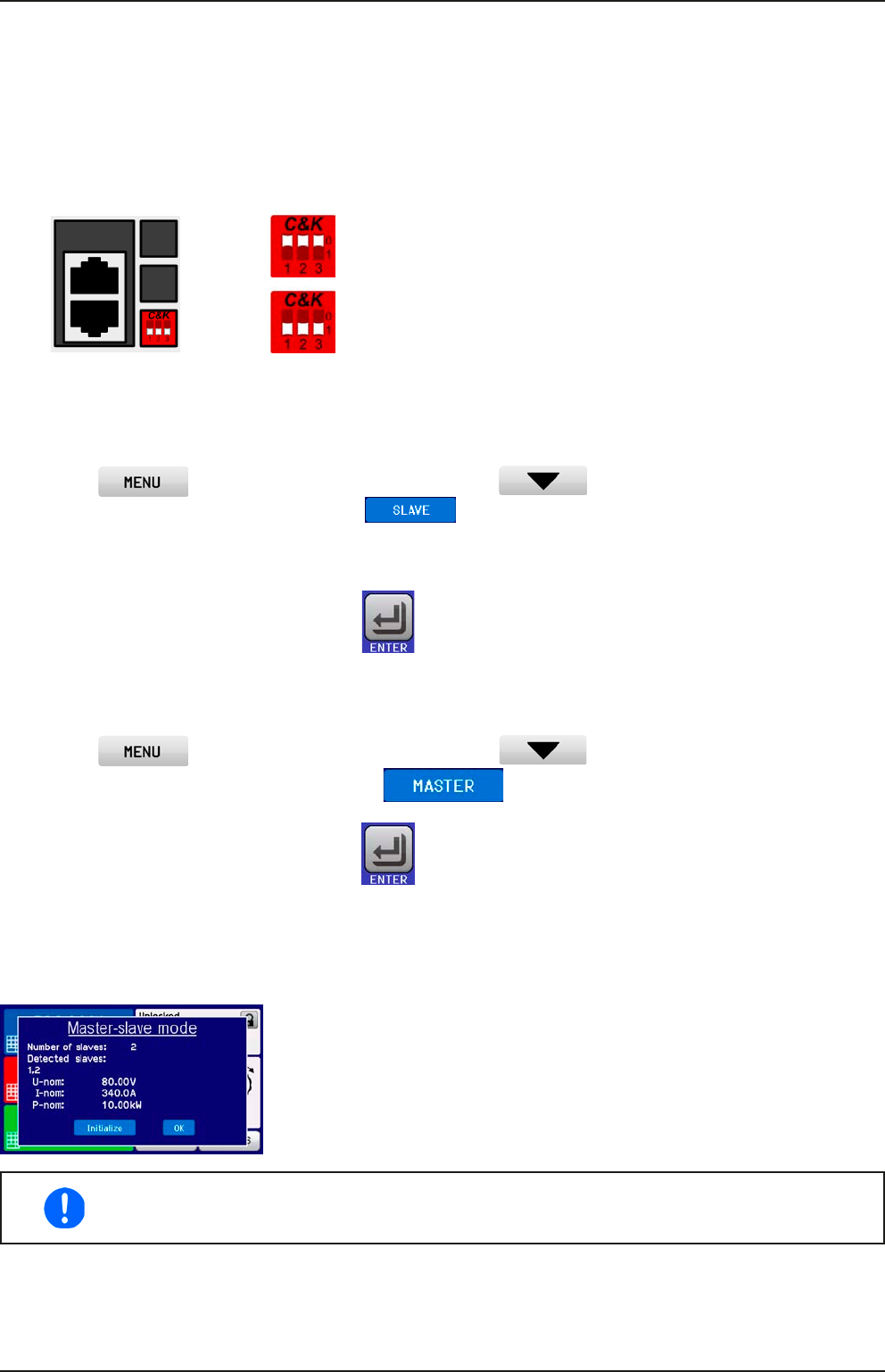 Now the master-slave system must be configured on each unit. It is recommended to configure first all the slave