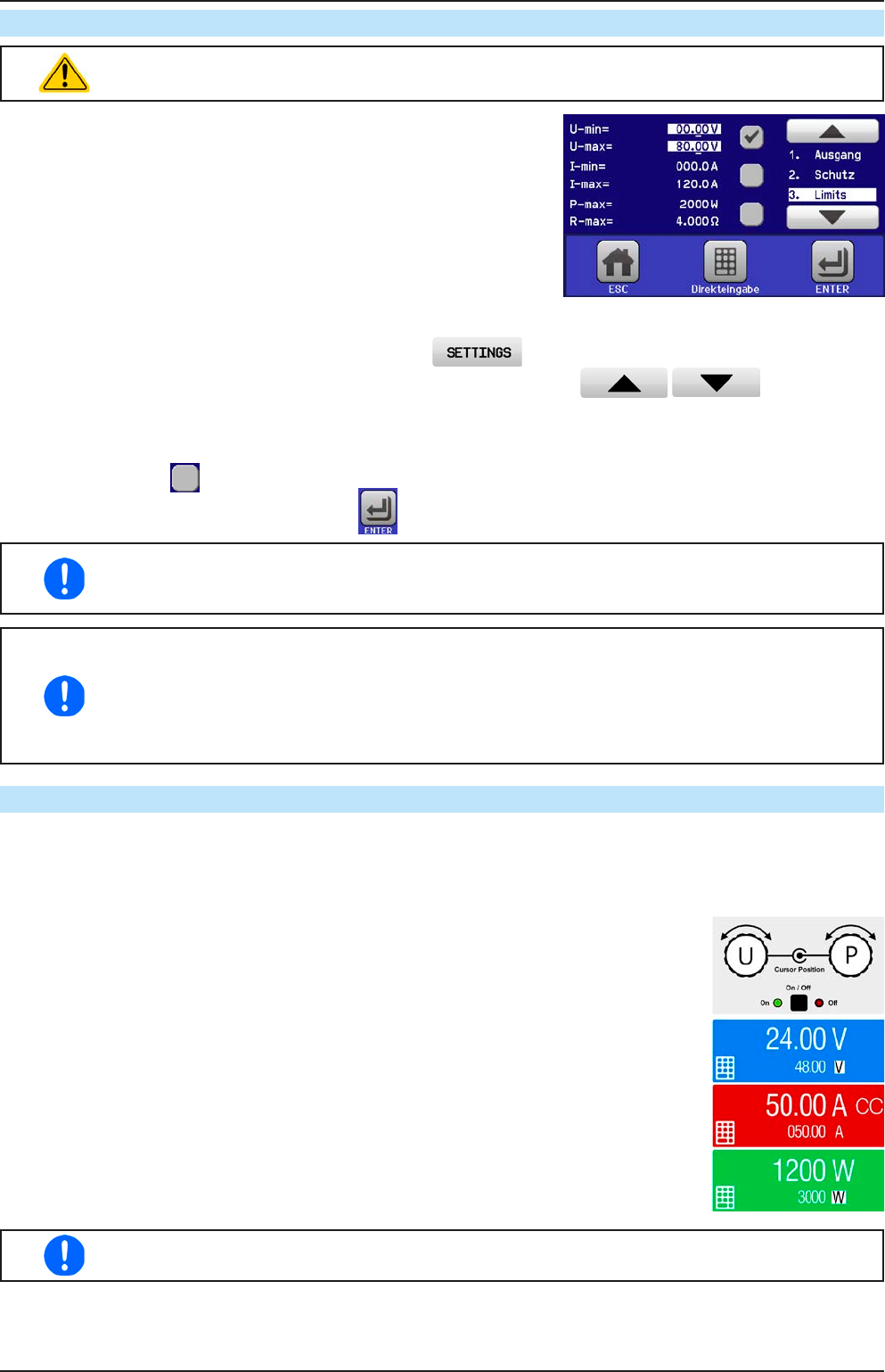 Die Einstellgrenzen gelten nur für die zugehörigen Sollwerte, gleichermaßen bei manueller