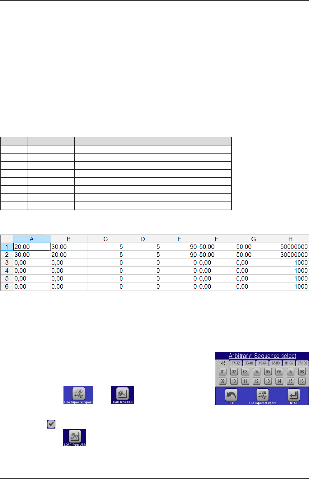 drive via the front side USB port. Generally, all 100 sequences are saved or loaded using a text le of type CSV