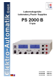 EN About the device 1. Introduction The laboratory power supplies of the series PS 2000 B Triple are very compact and rugged devices and incorporate interesting features within small dimensions. The contactless design makes them ideally suited for operation in schools, educational facilities, workshops or laboratories. The series offers models with 2x 100W or 2x 160W nominal power.